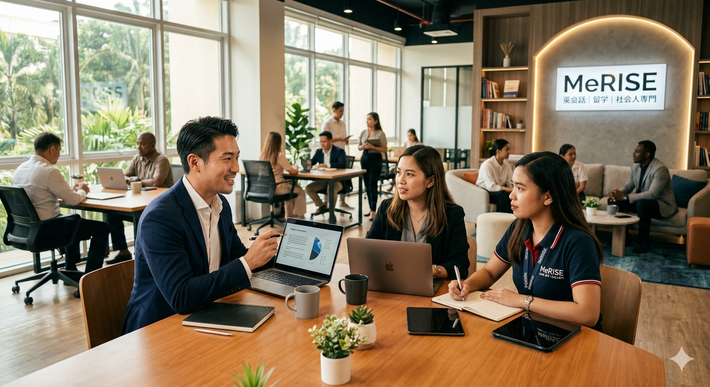 MeRISE(ミライズ)の体験談を紐解くと、多忙な社会人があえてこの学校を選ぶのには、明確な3つの理由があることが分かります。単なる語学学習の場を超えた、プロフェッショナルな仕組みを詳しく見ていきましょう。